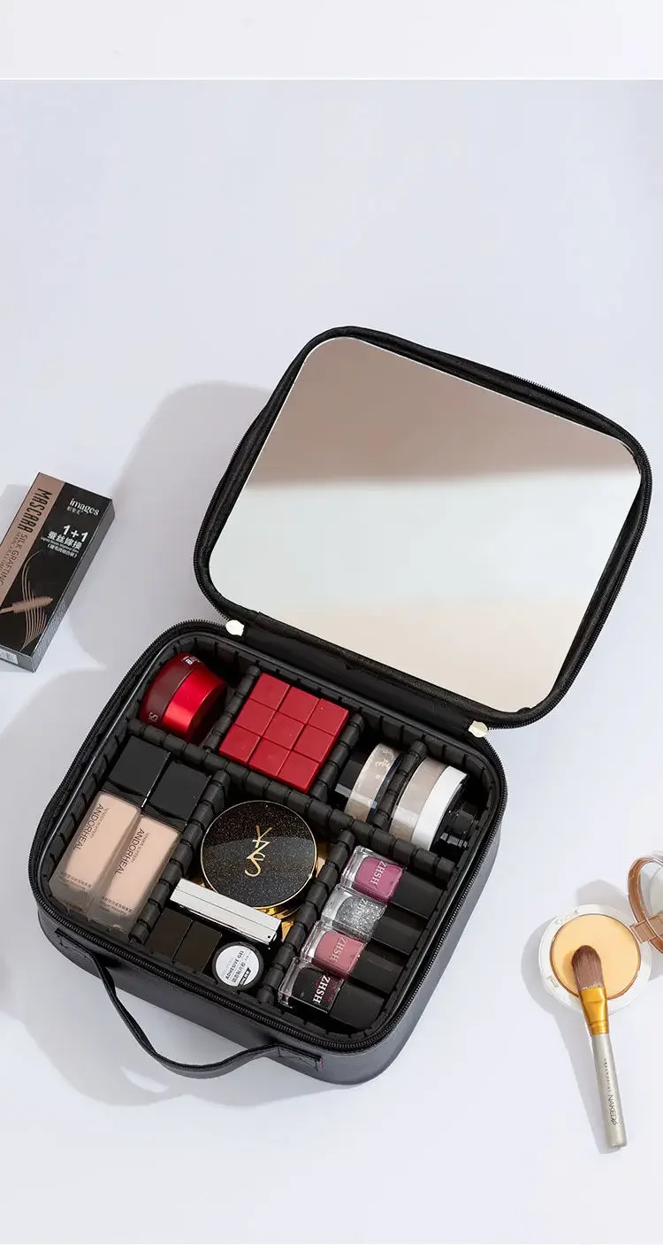 Picture this: You wake up early for work. Instead of rushing to the bathroom mirror, you unzip your sleek makeup bag, tap the LED mirror, and instantly create your look under perfect lighting.